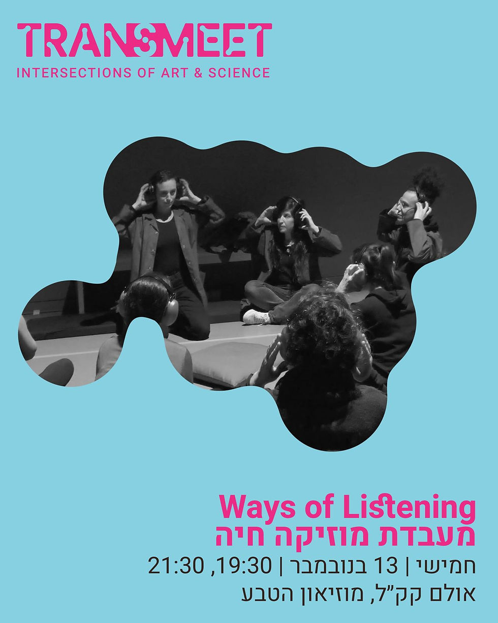 Ways of listening is a deep dive into the intricacies of sonic entities. By using audio technologies and combining external amplification, acoustic instruments, wireless headphones and noise-canceling headphones, participants will be able to experience phenomena of sound in various ways while experiencing the complex relationship between sensory perceptions in our human existence. The show is a laboratory in which sound phenomena are tested at their limitations, ranging between the most intimate sonorities to those inducing active vibration onto their environment. Sounds in this environment are to be experienced by us sensory beings - through our ears, body, eyes and from inside our head.